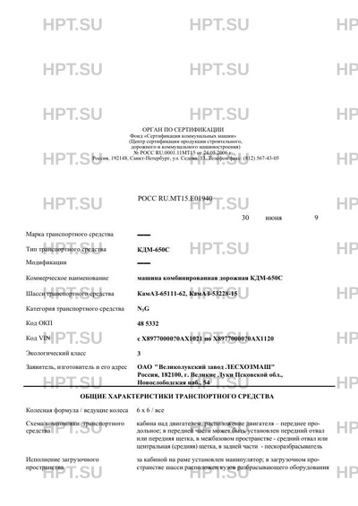 | Коммерческое наименование | машина комбинированная дорожная КДМ-650С |