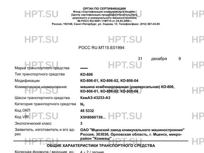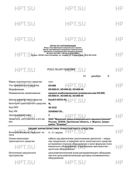 | Тип ТС | КО-806 (КО-806-01, КО-806-02, КО-806-04 ) |