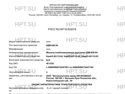 | Коммерческое наименование | Машина комбинированная дорожная КДМ-650-04 |