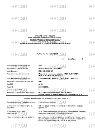 | Тип ТС | МСК-12, МСК-16-01, МСК-22-03 |
