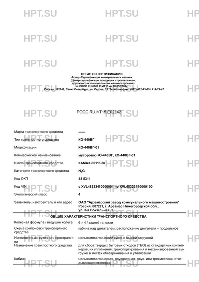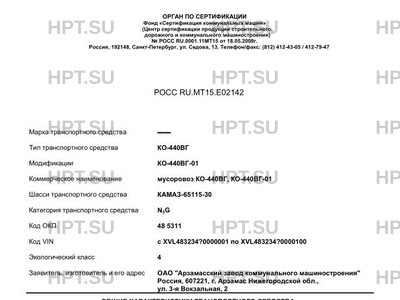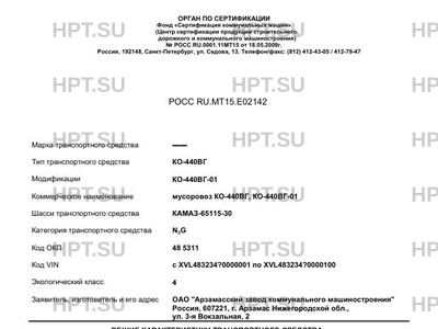 | Коммерческое наименование | мусоровоз КО-440ВГ, КО-440ВГ-01 |