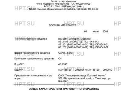 | Коммерческое наименование | прицеп - цистерна моделей: 8612 (8612-0000010) / ПЦ-10К-8543, 861201 (8612-000… |