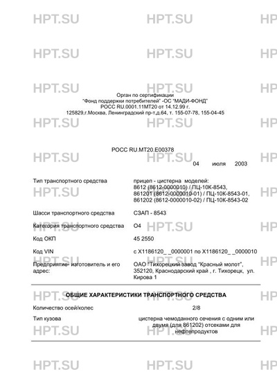 | Тип ТС | прицеп - цистерна моделей: 8612 (8612-0000010) / ПЦ-10К-8543, 861201 (8612-0000… |