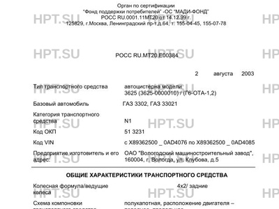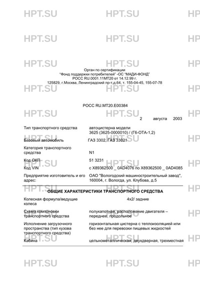 | Тип ТС | автоцистерна модели 3625 (3625-0000010) / (Г6-ОТА-1,2) |