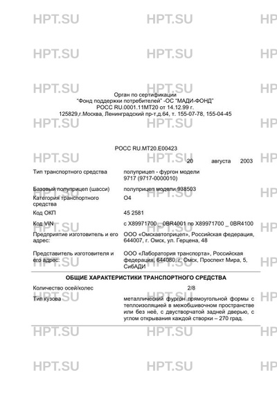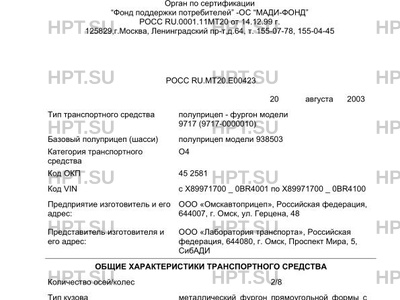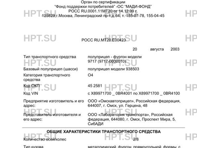 | Коммерческое наименование | полуприцеп - фургон модели 9717 (9717-0000010) |
