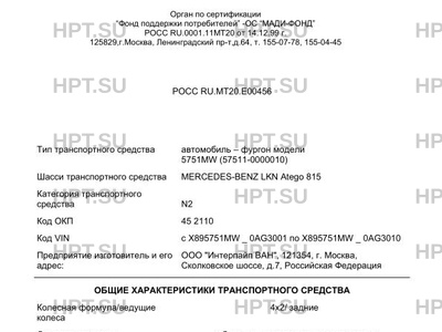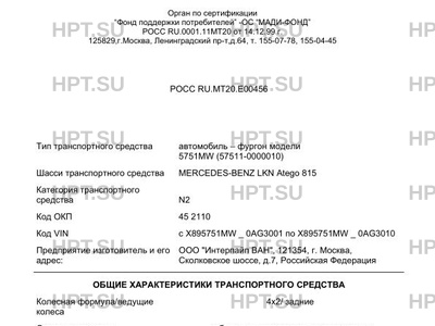 Тип ТС автомобиль - фургон модели 5751MW (57511-0000010)