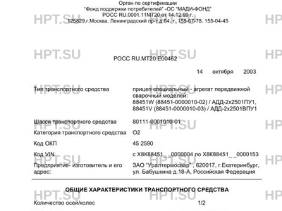 | Коммерческое наименование | прицеп специальный - агрегат передвижной сварочный моделей: 88451W (88451-0000… |