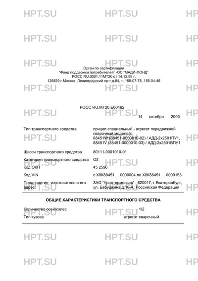 | Тип ТС | прицеп специальный - агрегат передвижной сварочный моделей: 88451W (88451-00000… |