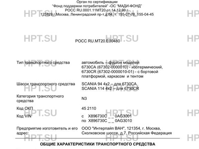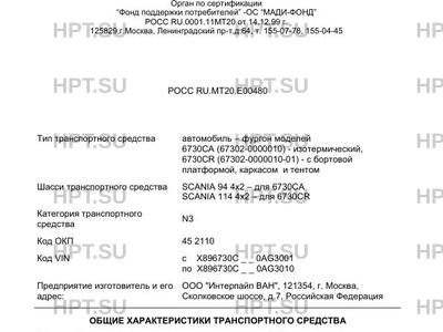 Тип ТС автомобиль – фургон моделей 6730СА (67302-0000010) - изотермический, 6730СR (67…