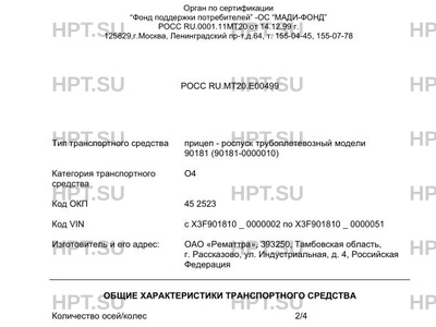 | Тип ТС | прицеп - роспуск трубоплетевозный модели 90181 (90181-0000010) |