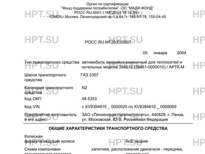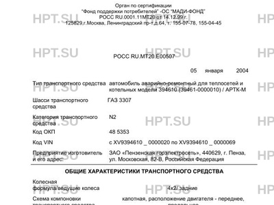 | Коммерческое наименование | автомобиль аварийно-ремонтный для теплосетей и котельных модели 394610 (39461-0… |