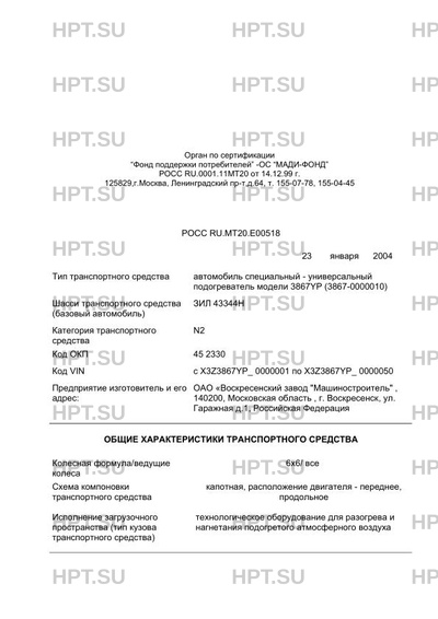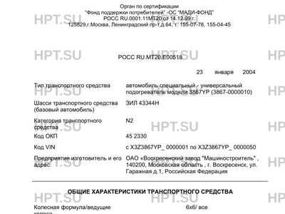 | Тип ТС | aвтoмoбиль специальный - универсальный подогреватель модели 3867YP (3867-0000010) |