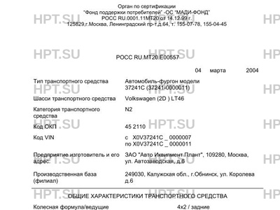 Базовое ТС / Шасси Volkswagen (2D) LT46