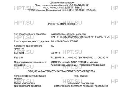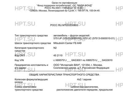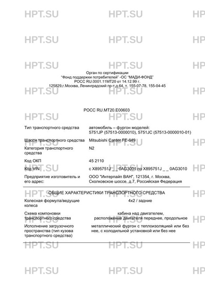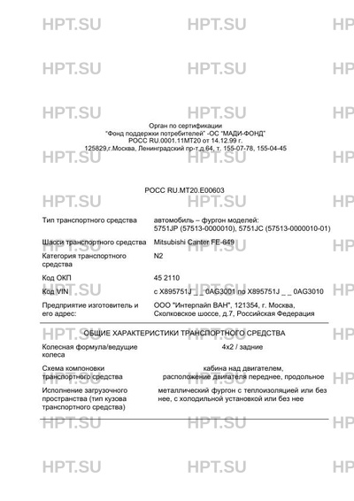 | Тип ТС | автомобиль – фургон моделей: 5751JP (57513-0000010), 5751JC (57513-0000010-01) |
