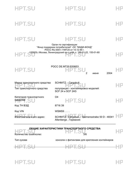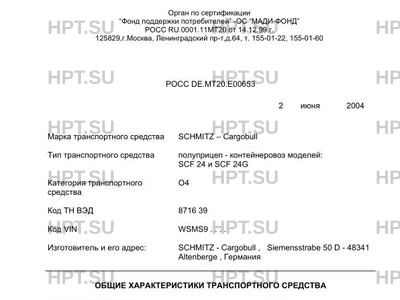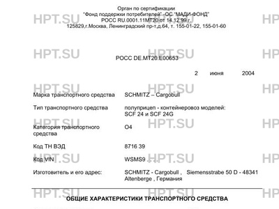 | Тип ТС | полуприцеп - контейнеровоз моделей: SCF 24 и SCF 24G |