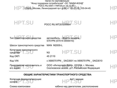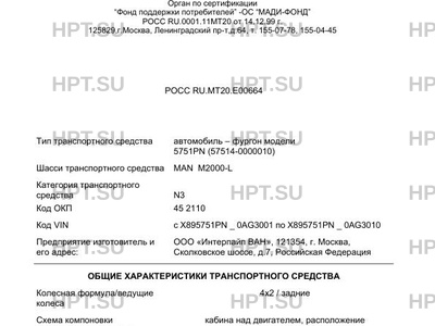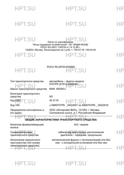 | Тип ТС | автомобиль – фургон модели 5751PN (57514-0000010) |