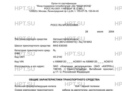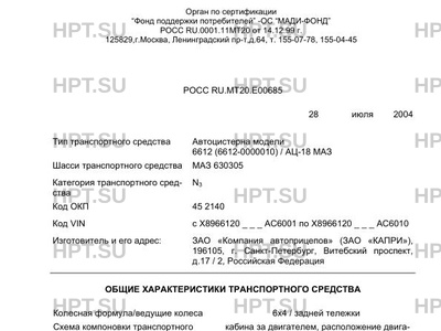 | Тип ТС | Автоцистерна модели 6612 (6612-0000010) / АЦ-18 МАЗ |