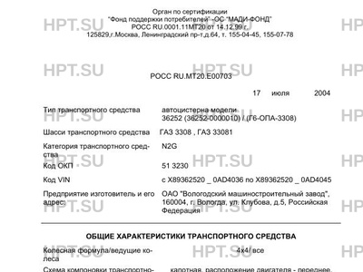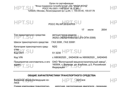 | Коммерческое наименование | автоцистерна модели 36252 (36252-0000010) / (Г6-ОПА-3308) |