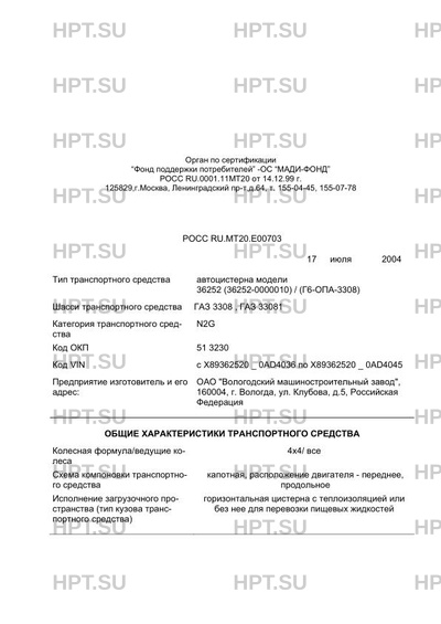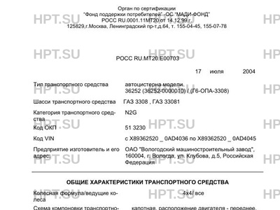 | Тип ТС | автоцистерна модели 36252 (36252-0000010) / (Г6-ОПА-3308) |