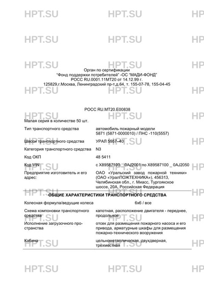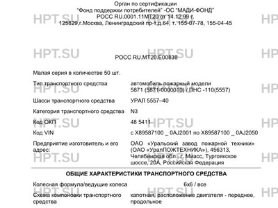 | Коммерческое наименование | автомобиль пожарный модели 5871 (5871-0000010) / ПНС -110(5557) |