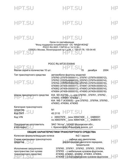 | Коммерческое наименование | автомобили-фургоны моделей 3797К0 (37979-0000011), 3797К1 (37979-0000012), 3797К2 (37979-0000013), 3797К3 (37979-0000014), 3797К4 (37979-0000015), 3797К5 (37979-0000016), 4740К0 (47409-0000011), 4740К1 (47409-0000012), 4740К2 (47409-0000013), 4740К3 (47409-0000014), 4740К4 (47409-0000015), 4740К5 (47409-0000016) |