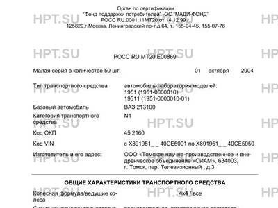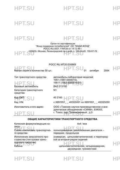 | Коммерческое наименование | автомобиль-лаборатория моделей: 1951 (1951-0000010), 19511 (1951-0000010-01) |