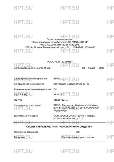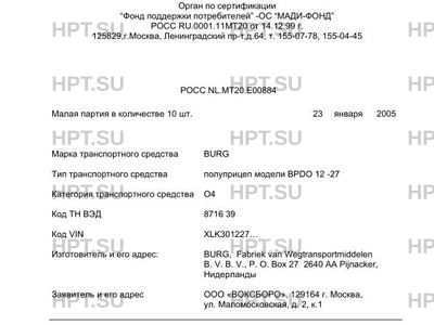 | Коммерческое наименование | полуприцеп модели BPDO 12 -27 |