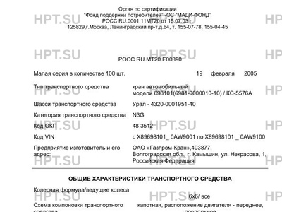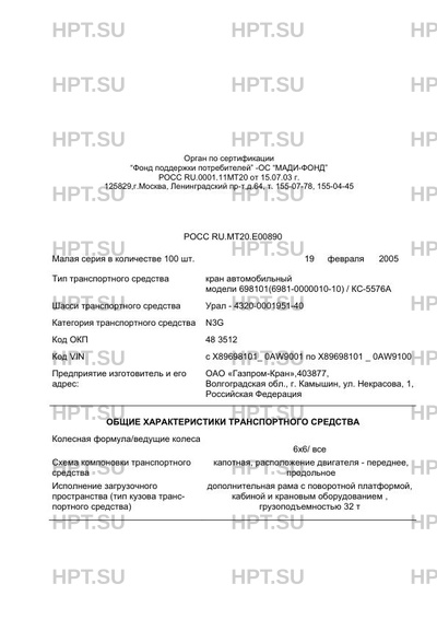 | Тип ТС | кран автомобильный модели 698101(6981-0000010-10) / КС-5576А |
