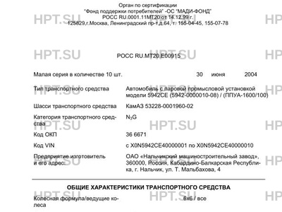 | Код VIN | с X0N5942СE40000001 по X0N5942СE40000010 |