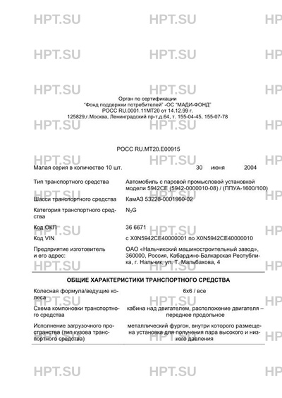 | Тип ТС | Автомобиль с паровой промысловой установкой модели 5942CE (5942-0000010-08) / (ППУА-1600/100) |