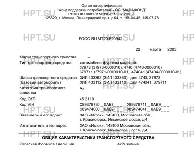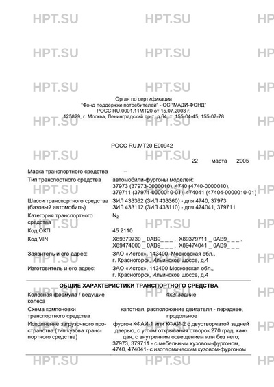 | Коммерческое наименование | автомобили-фургоны моделей: 37973 (37973-0000010), 4740 (4740-0000010), 379711 (37971-0000010-01), 474041 (47404-0000010-01) |