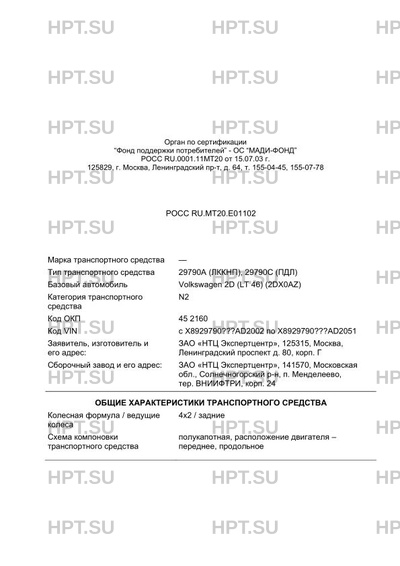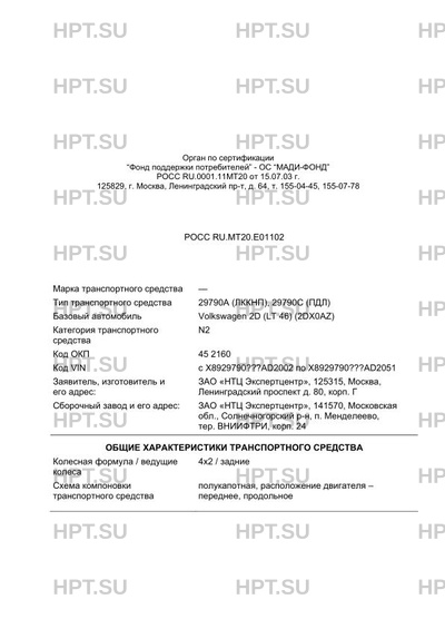 | Код VIN | с Х8929790???AD2002 по Х8929790???AD2051 |