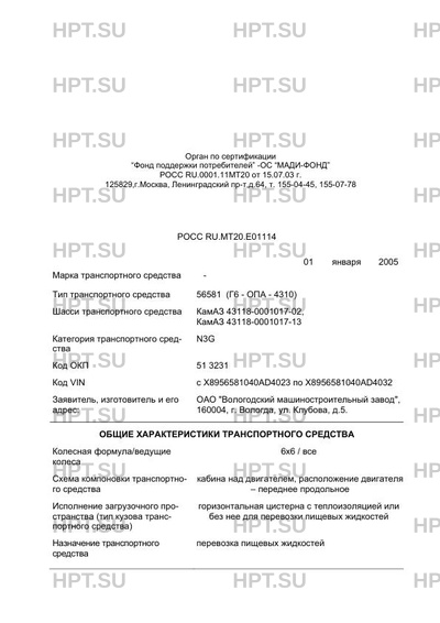 | Тип ТС | 56581 (Г6 - ОПА - 4310) |
