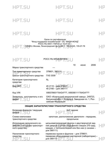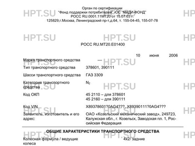 | Тип ТС | 378601, 390111 |