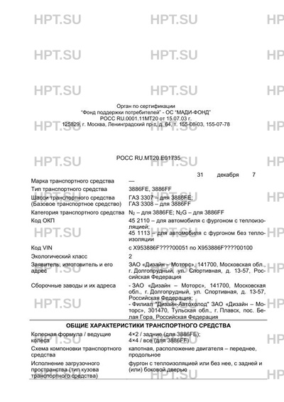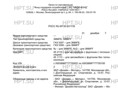 | Код ОКП | 45 2110 – для автомобиля с фургоном с теплоизоляцией; 45 1113 – для автомобиля с фургоном без теплоизоляции |