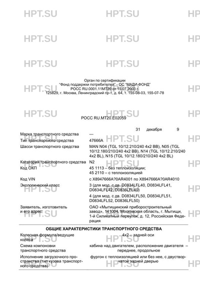 | Исполнение загрузочного пространства | фургон с теплоизоляцией или без нее, с двустворчатой задней дверью 2 |