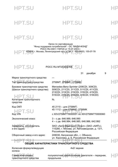 | Код VIN | с Х0V2758M??0000051 по Х0V2758M??0000060 |