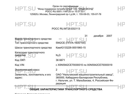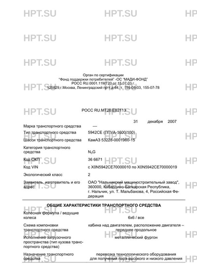 Код VIN с X0N5942СE70000010 по X0N5942СE70000019