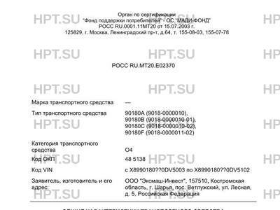 Код VIN с X8990180??0DV5003 по X8990180??0DV5102