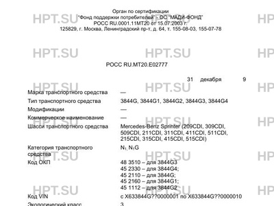| Базовое ТС / Шасси | Mercedes-Benz Sprinter (209CDI, 309CDI, 509CDI, 211CDI, 311CDI, 411CDI, 511CDI,… |