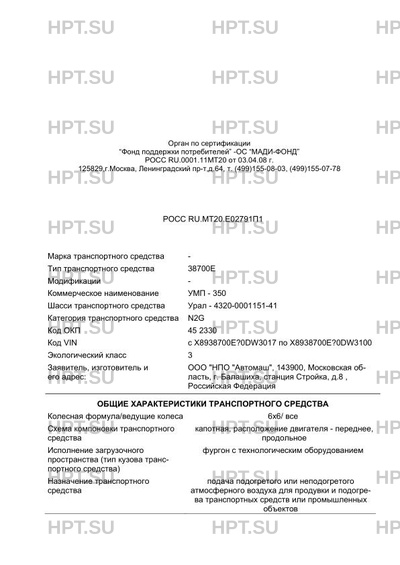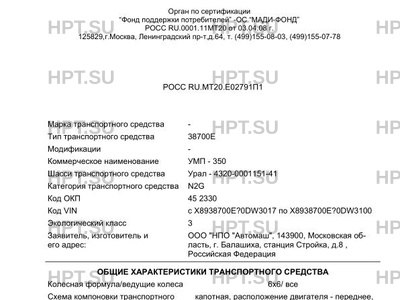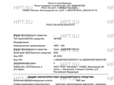 | Базовое ТС / Шасси | Урал - 4320-0001151-41 |