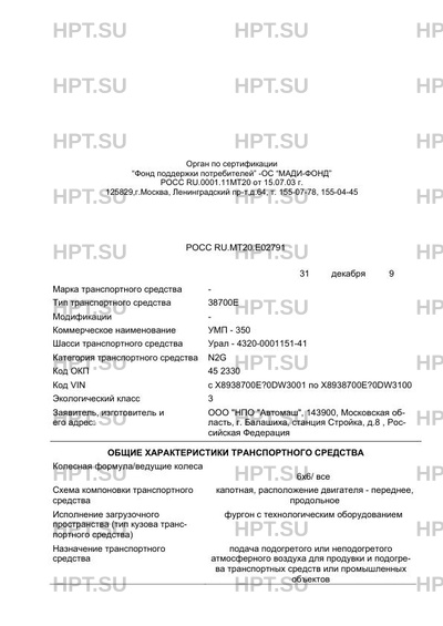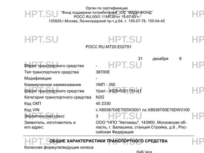 | Базовое ТС / Шасси | Урал - 4320-0001151-41 |