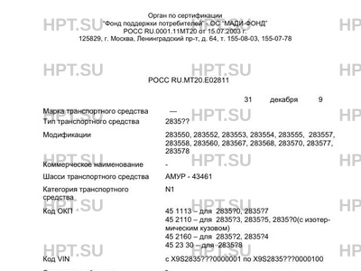 | Базовое ТС / Шасси | АМУР - 43461 |