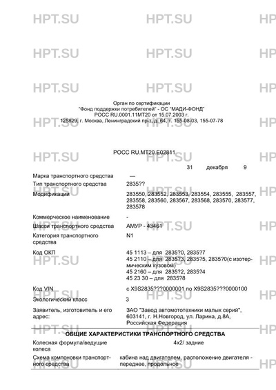 | Код VIN | с Х9S2835???0000001 по Х9S2835???0000100 |