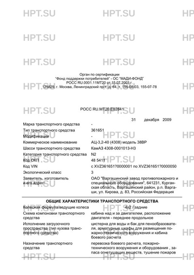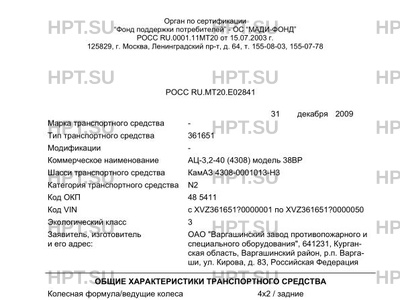 Коммерческое наименование АЦ-3,2-40 (4308) модель 38ВР