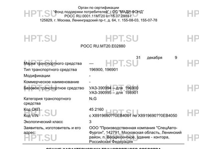Заявитель ООО "Производственная компания "СпецАвтоФургон", 142791, Московская область, Ленинский район, п. Воскресенское, здание - контора, Российская Федерация