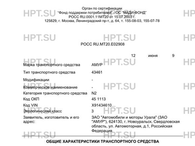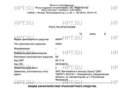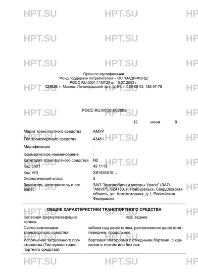 | Оборудование ТС | по заказу - каркас и тент кузова АМУР 43461 |