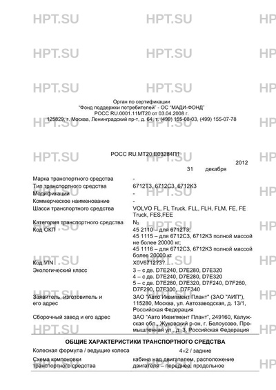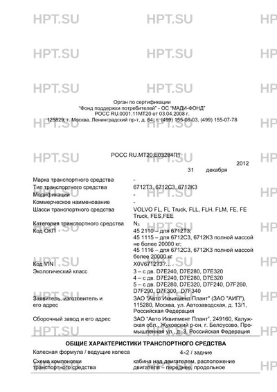 | Код ОКП | 45 2110 – для 6712T3;45 1115 – для 6712C3, 6712K3 полной массой не более 20000 кг;45 1116 – для 6712C3, 6712K3 полной массой более 20000 кг |