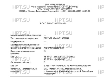 | Базовое ТС / Шасси | NISSAN Cabstar F24 |