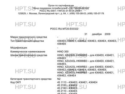 | Коммерческое наименование | 4364Е0, 4364Е1, 4364Е2, 4364Е3, 4364Е4, 4364Е5, 4364Е6 / HINO 300 |